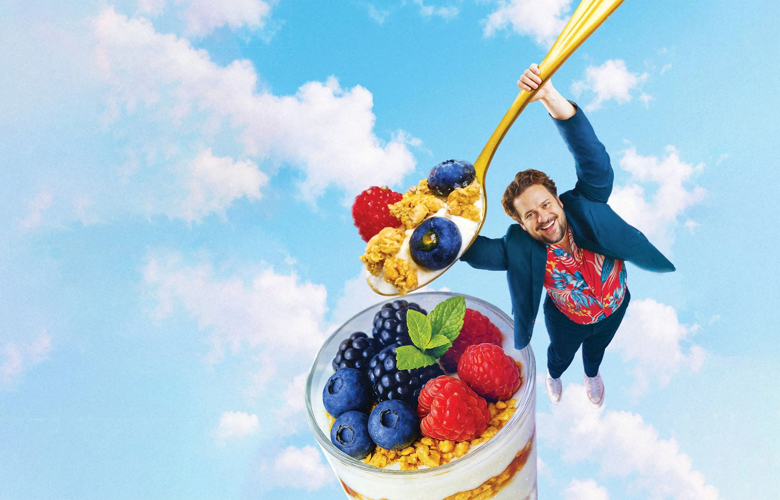Host Hunter Cope serves up parfaits and playful banter with iconic guests, tackling life’s biggest, dumbest questions — one fruity, creamy layer at a time.